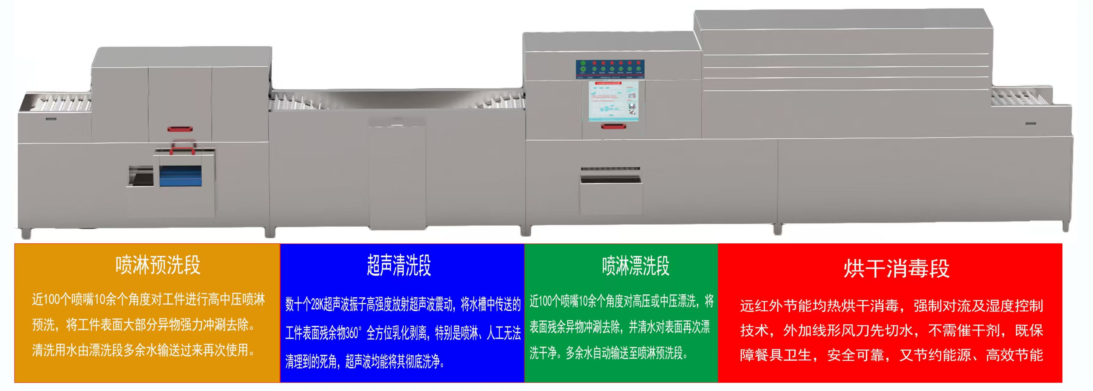 全自動超聲波洗碗機(jī):為中央廚房量身打造的高效 上超全自動超聲波洗碗機(jī)核心清洗流程:為您帶來的運(yùn)營價(jià)值:我們致力于為團(tuán)體食